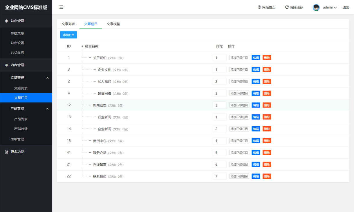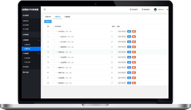 后台编辑全站公共信息、文章内容和频道页面,所见即所得
