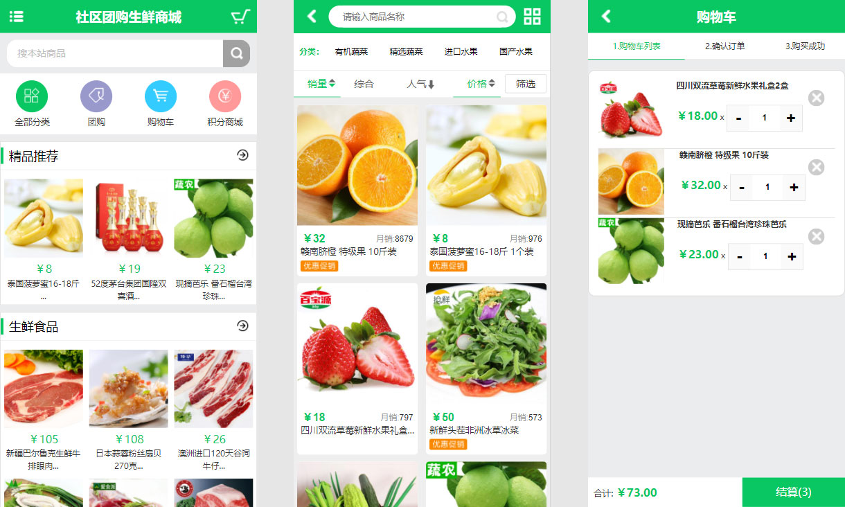 超市卖场水果店生鲜商城,PC手机小程序三合一