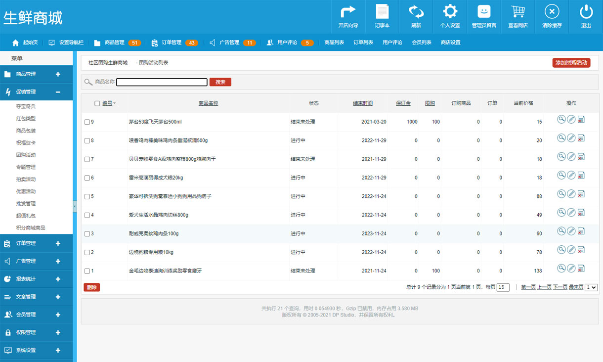 会员中心、会员等级管理、团购促销活动、购物车、会员订单、商品收藏