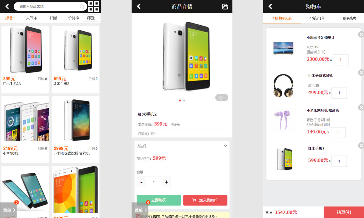 商品展示:商品主图、商品名称、促销标题、商品价格;商品排序和筛选