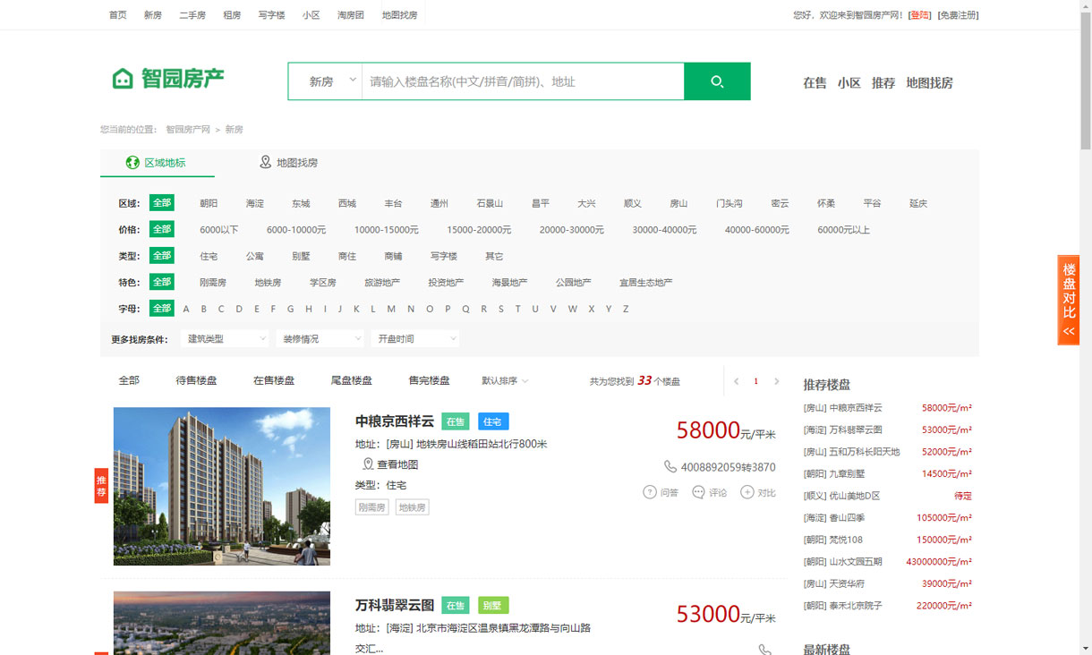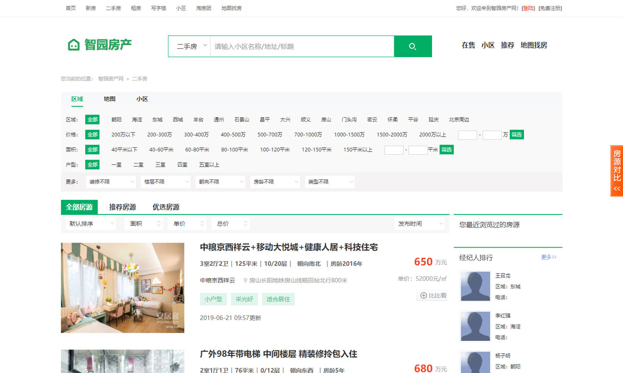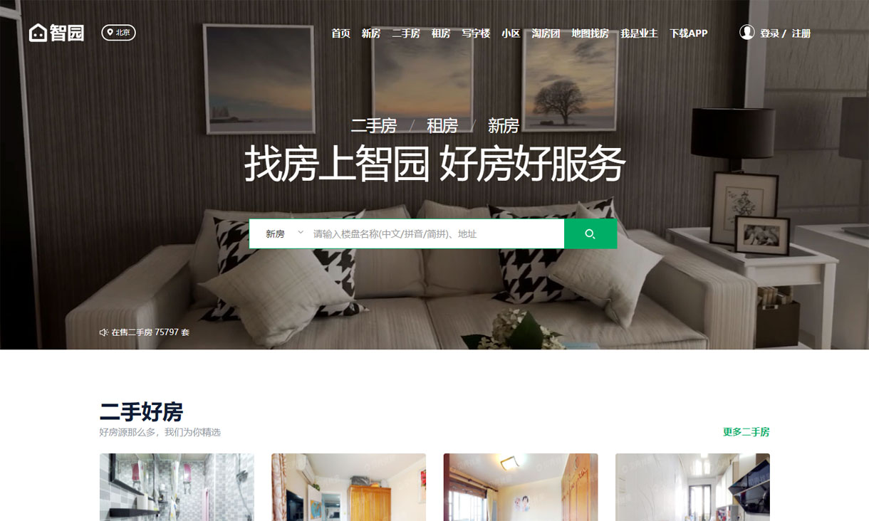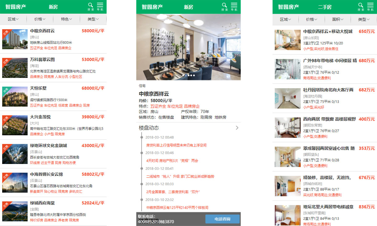 楼盘小区搜索、房源列表和详情、预约看房及联系经纪人