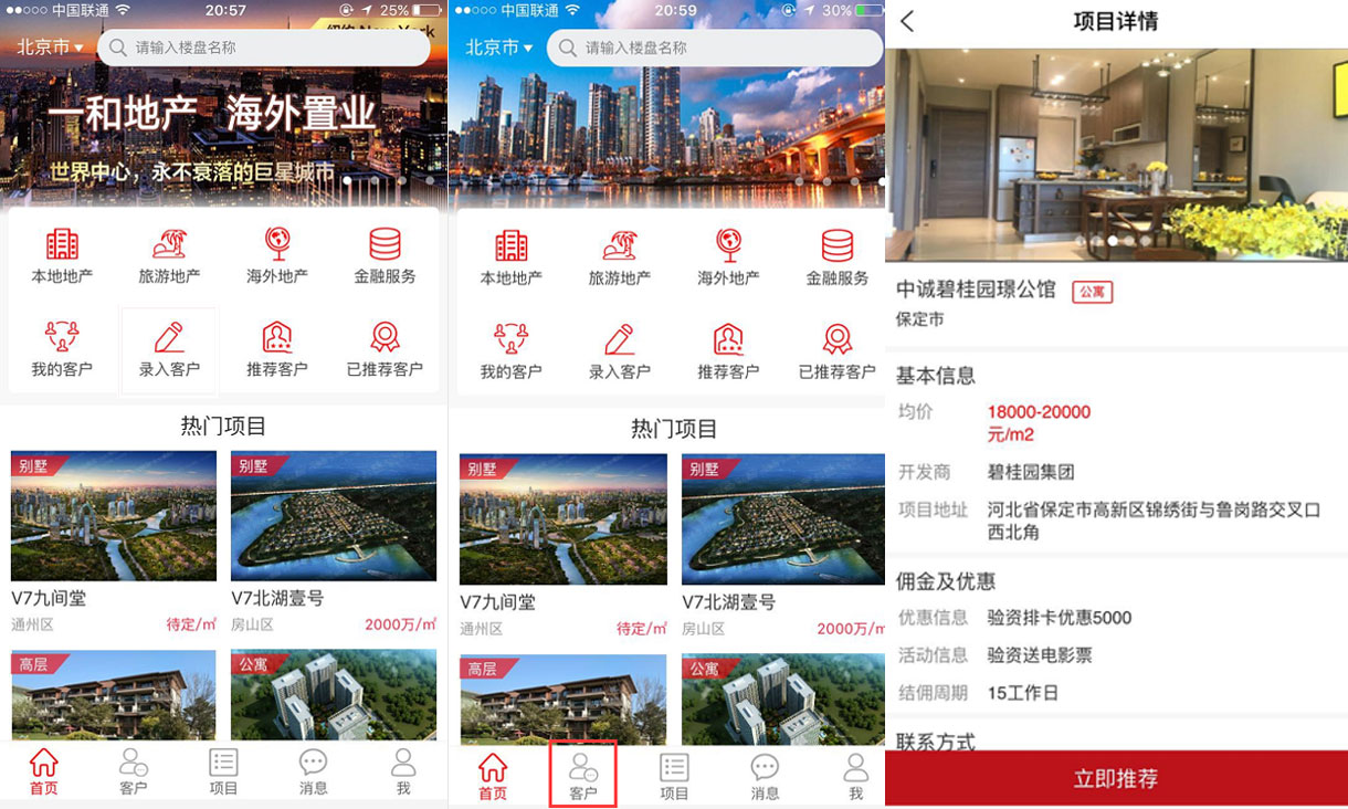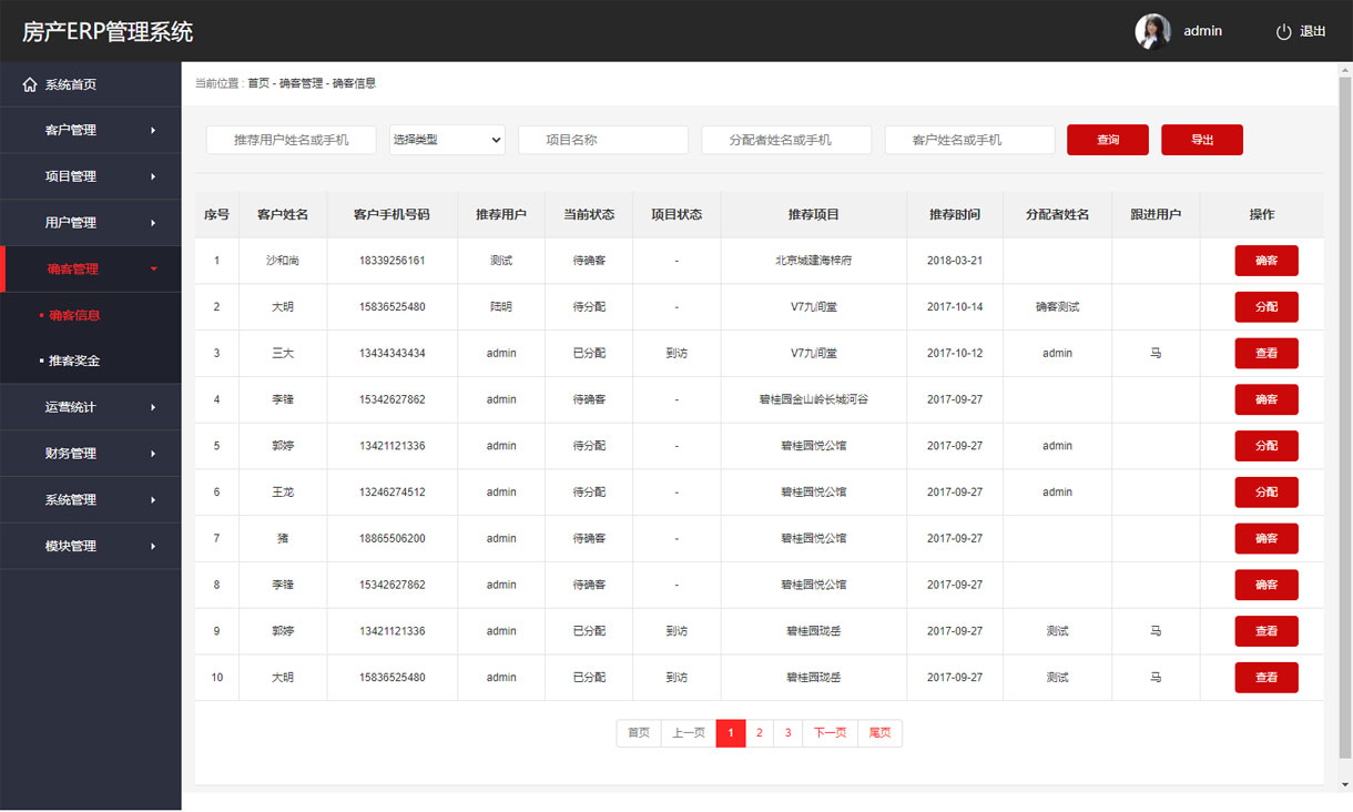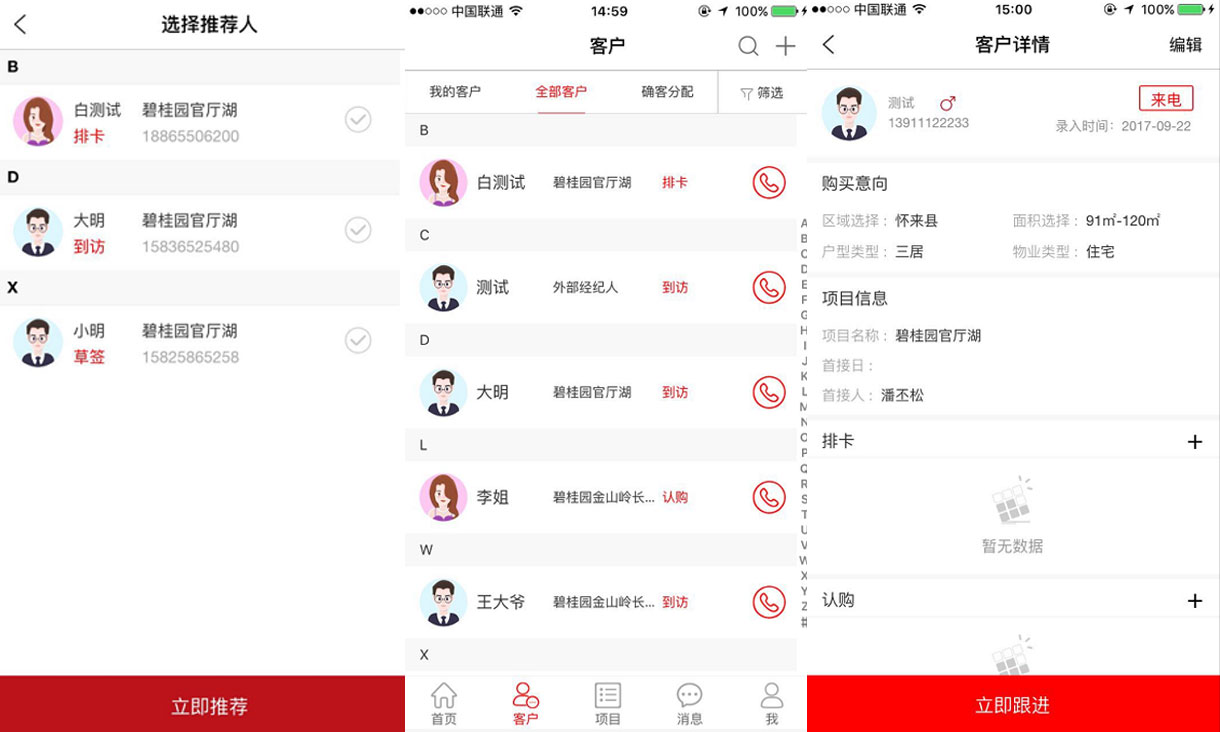 客户购房和租房意向管理、客户联系信息、客户状态跟进