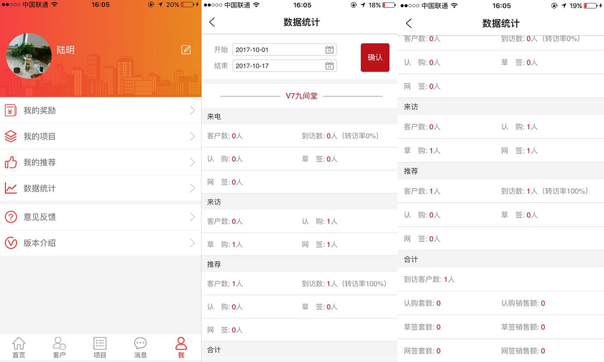 本人成交记录、门店成交数据、业绩和佣金提点统计