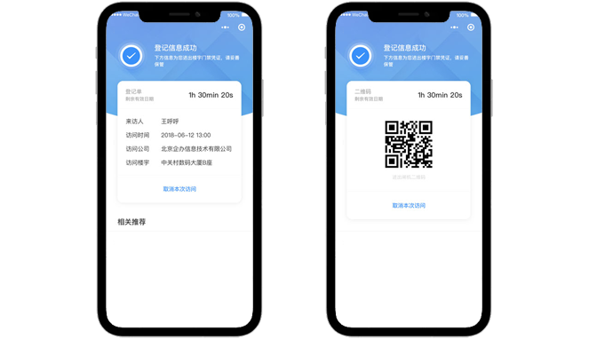 获得授权的或提交登记的访客人员将生成身份二维码